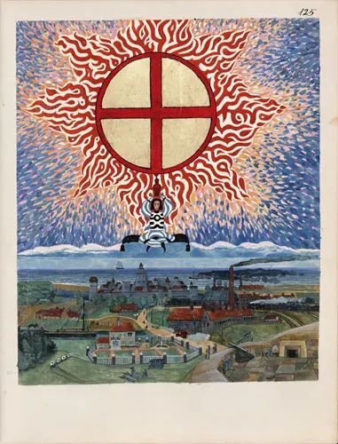 Zavest, ki je bila prej zasidrana v znanstveni racionalnosti, se nenadoma znajde brez opore. Takrat začne prihajati material iz nezavednega: